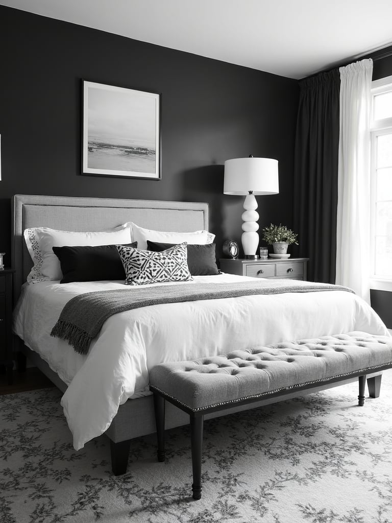 A well-designed black and white guest bedroom tells a story through its versatile tonal range and material choices. Begin by identifying the mood you want to achieve, then layer black and white tones from light to dark across different surfaces and elements. This graduated approach creates a room that feels intentionally designed and visually engaging, with every piece contributing to the overall black and white narrative.