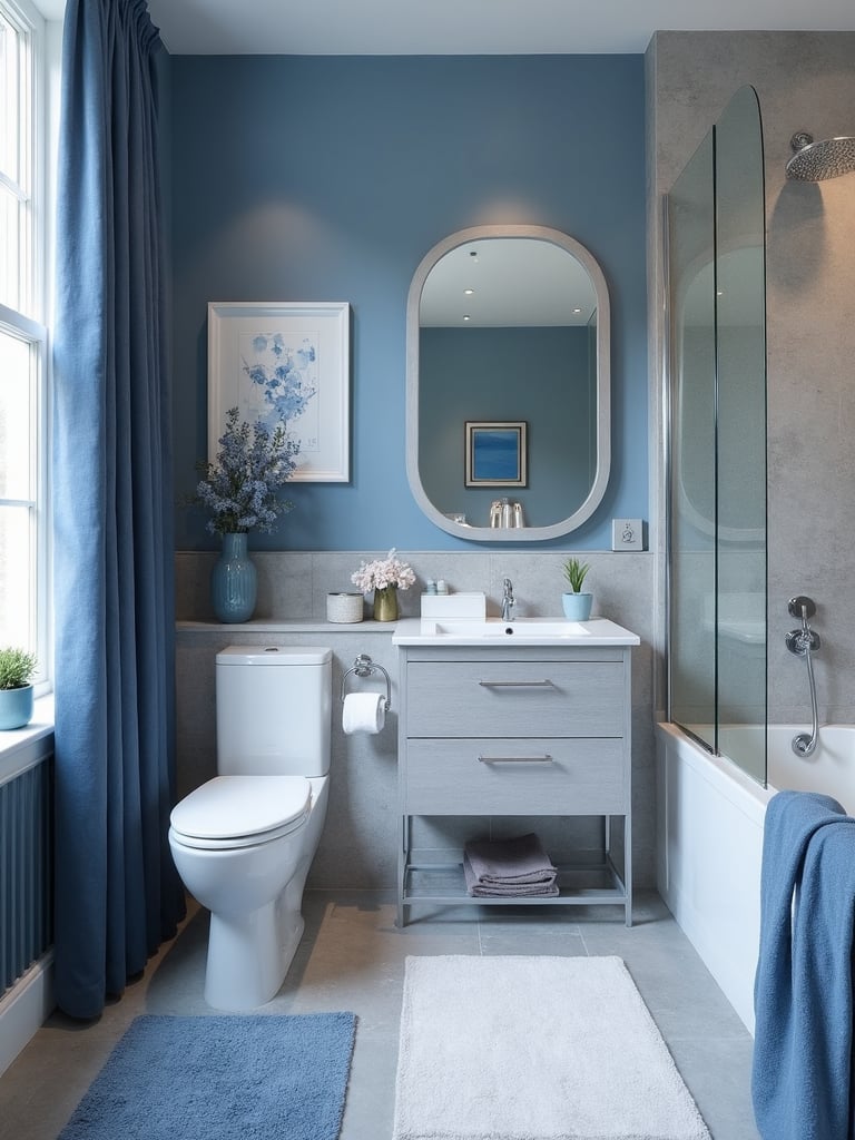 Establish the blue and grey aesthetic with appropriate foundational elements