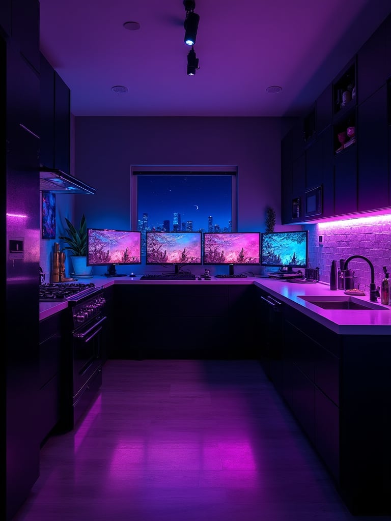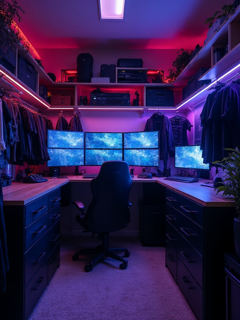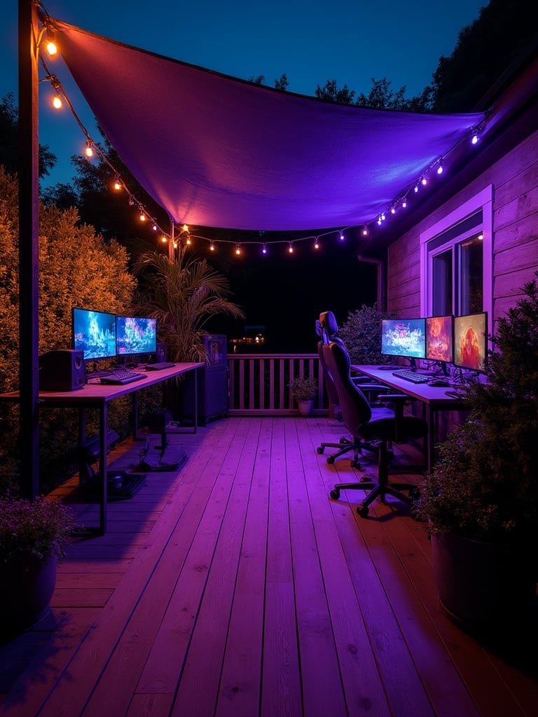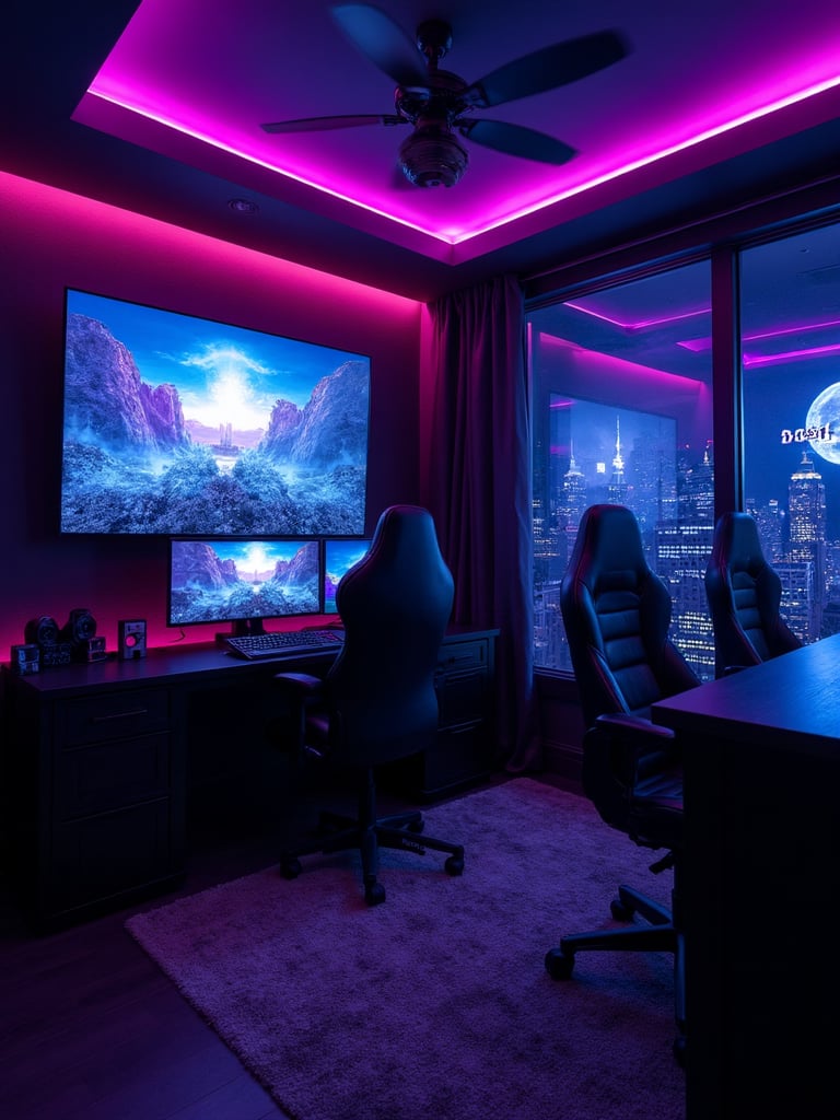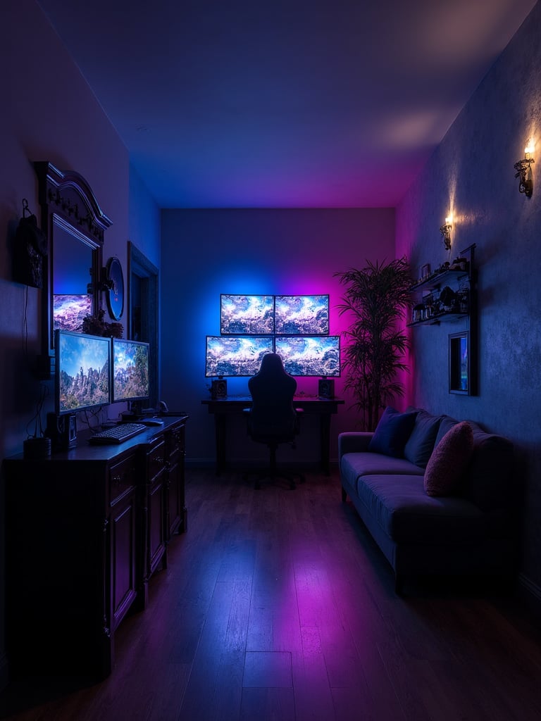 Establish the gaming room aesthetic with appropriate foundational elements