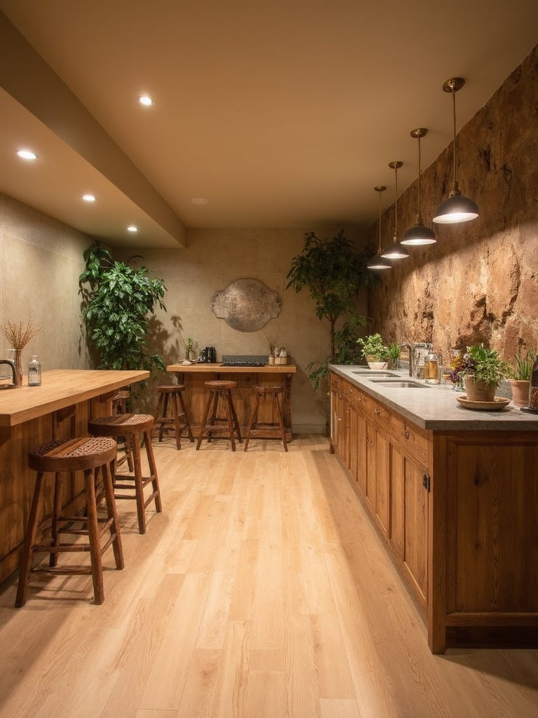 Use Natural Wood as your base and accent with Earth Tones